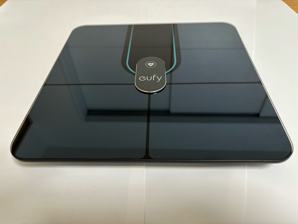 僕は最初スマホやアプリを使って連携することまで考えていなかったので他社の体重計を買いました。Eufy(ユーフィ)のSmart Scale P2 Proです。見た目がクール。一目ぼれです。オムロンと同じようにスマホの専用アプリに測定データを自動転送してくれます。