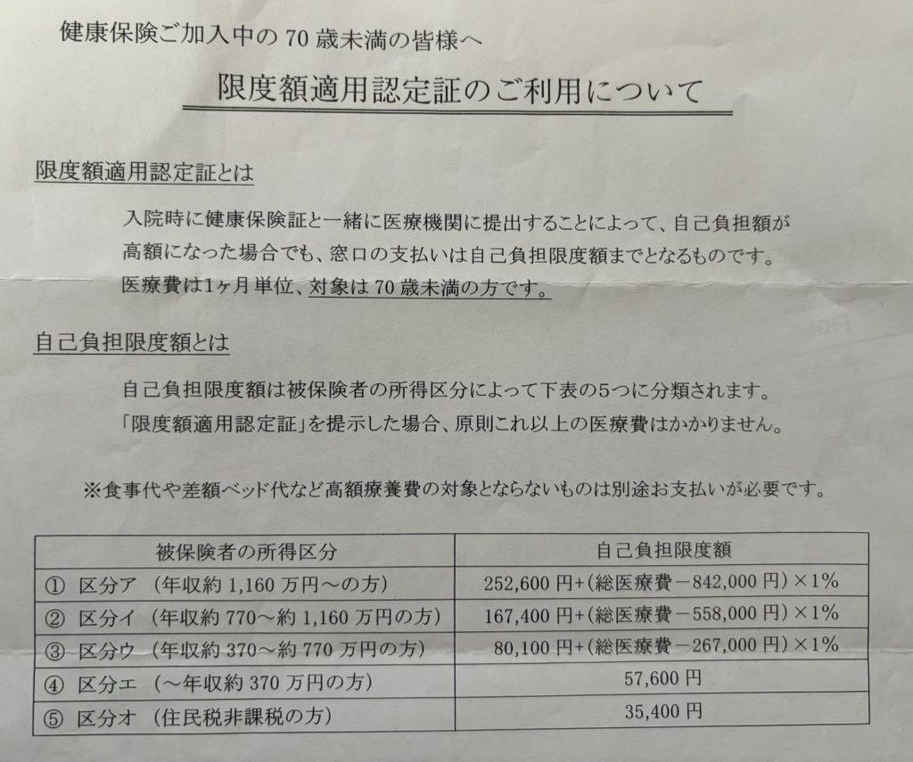 退院日の朝、限度額適用前の請求書を見た時はビビりました。心臓に悪いですね。