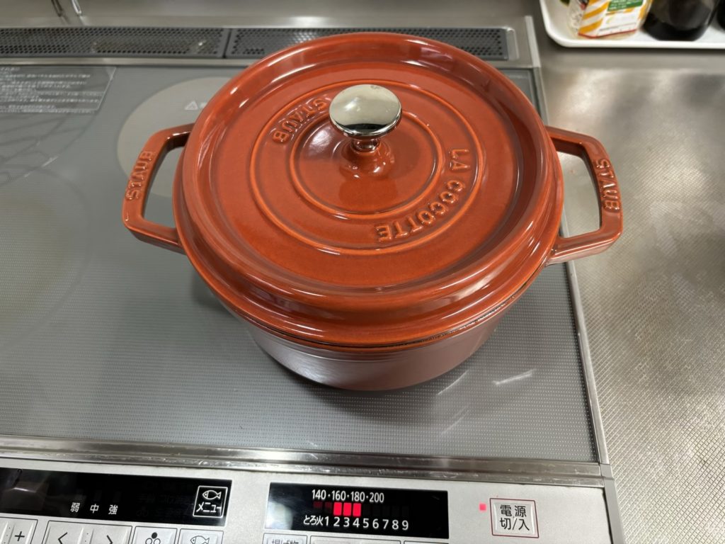5 蓋の隙間から蒸気がでたら底をよく混ぜてから、極弱火にして10分加熱してから