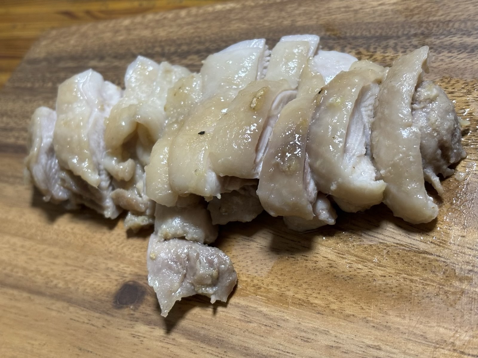 ①鶏もも肉に減塩50%しおとジンジャーレモンシロップをまぶしジップロックに入れて冷蔵庫で1時間以上おく。