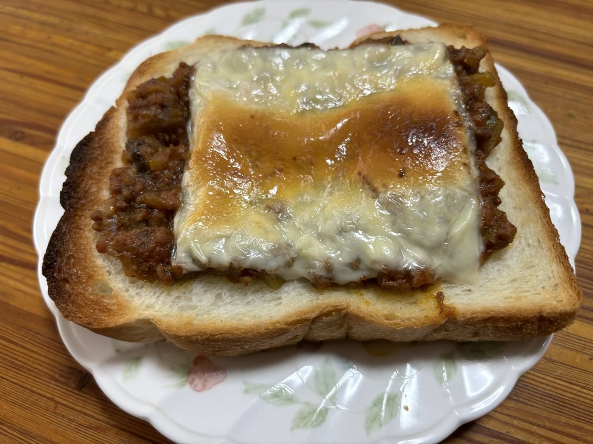 今日のお昼はドライカレーを使ったピザトーストです。トロトロチーズとドライカレーの風味。それがサクッと焼きあがったパンに絶妙にはまっていました。なんだかお昼から贅沢な気持ちになりますね。