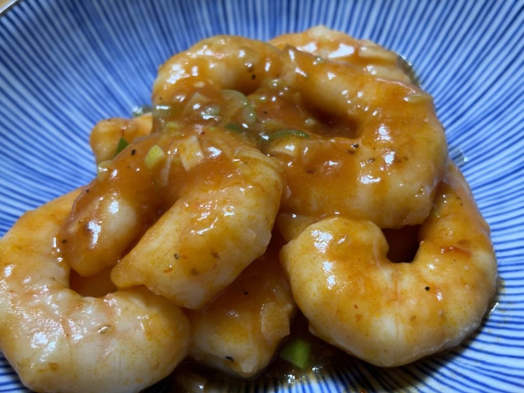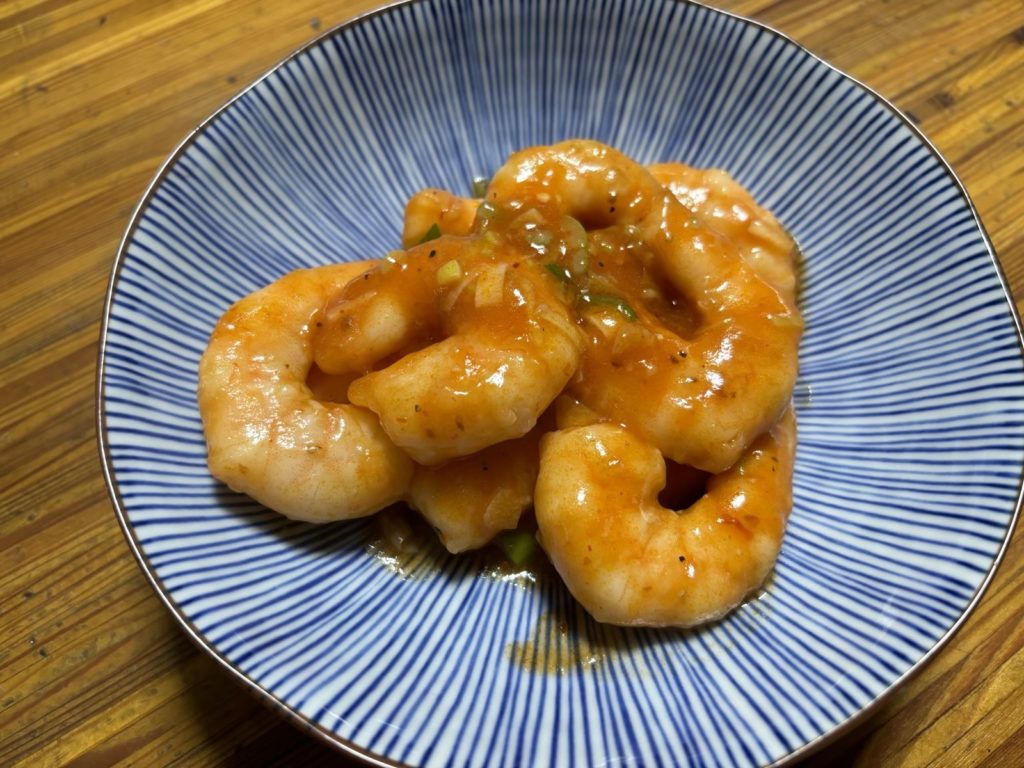 今日の夕飯はエビチリです。母から教えてもらいました。プリプリのエビとピリ辛のチリソースの相性はバッチリ。減塩仕様でもご飯がすすんで最高ですね。