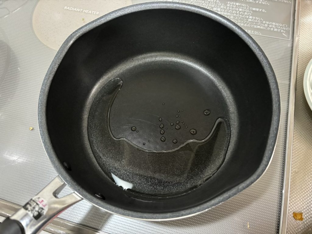 ④フライパンにオリーブオイルをひいて中火で熱する。