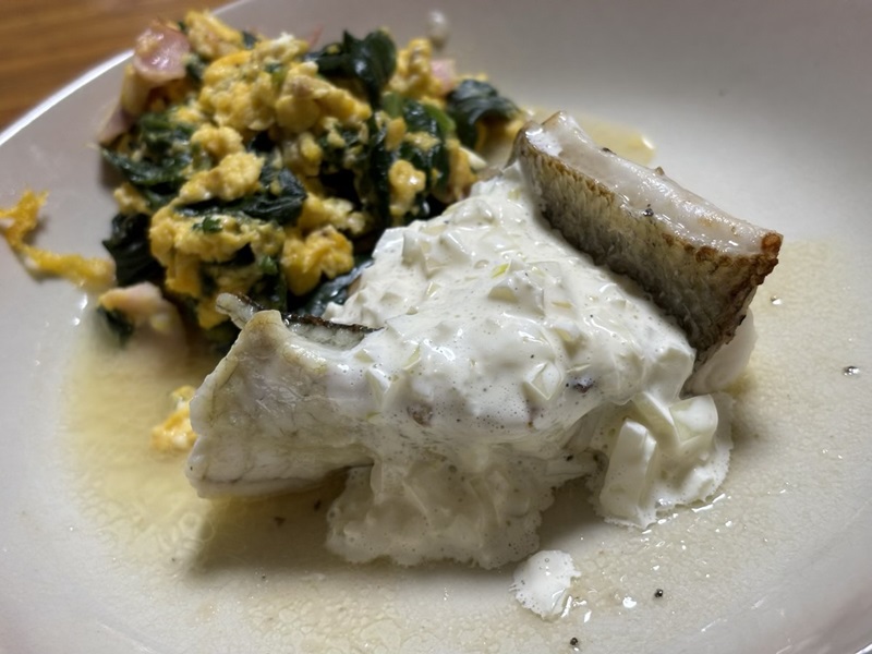 減塩食開始76 スズキのムニエル~タルタルソース白バルサ玉葱~