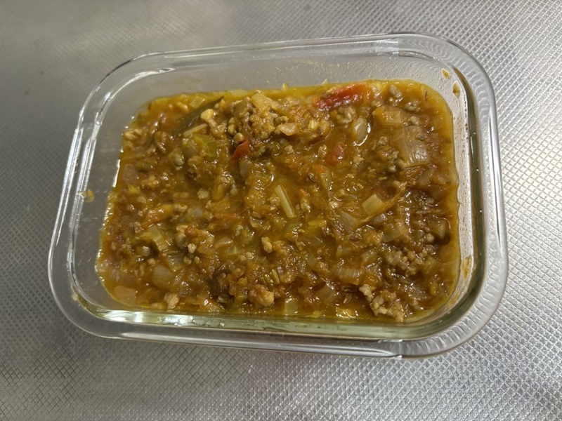 ドライカレーは一度に4食分作り1食分ずつ冷凍保存しています。食べたくなったレンチン。