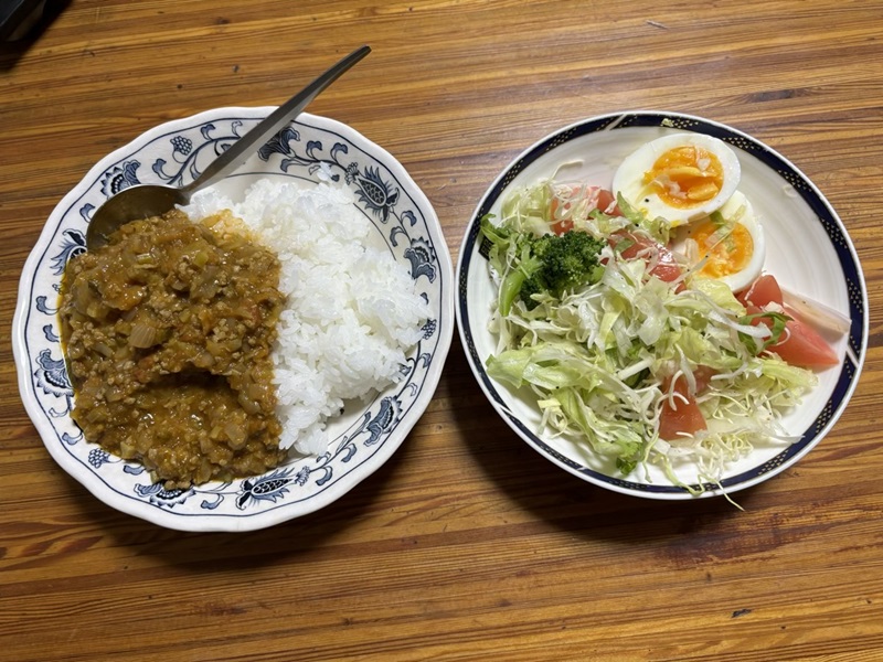 今日は定番メニューとなってきたドライカレーとサラダです。