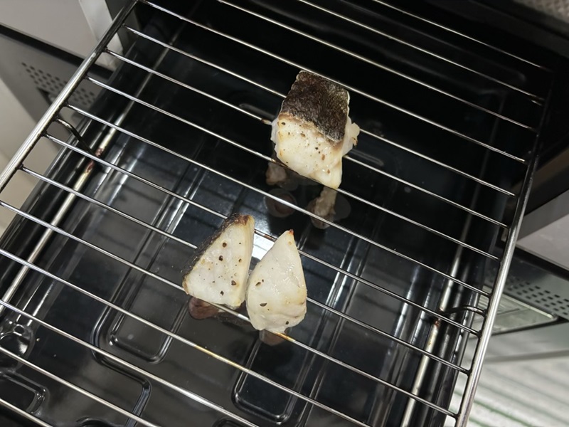 ②解凍した鱈にコショウをふって魚焼きグリルで焼く。